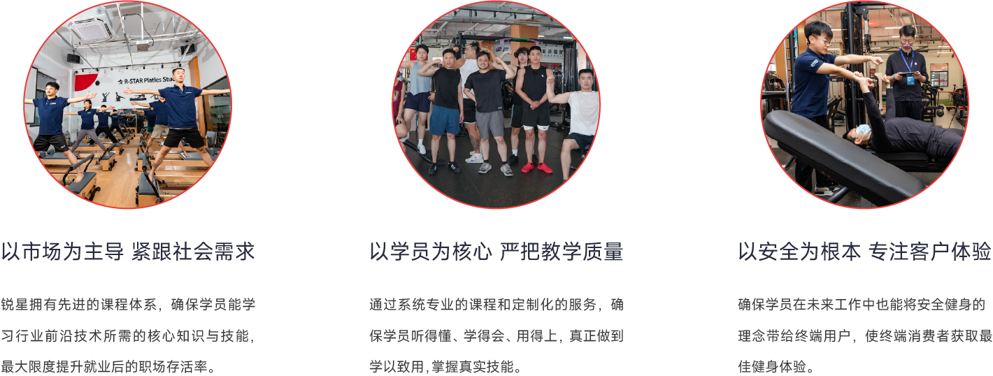 锐星一直致力于培养具备实战性技能的优秀健身教练人才,注重实践操作,强调实际应用。